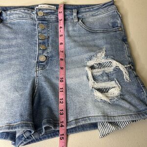 3/$30 Kancan Shorts Womens 32 Light Wash Hi Rise Button Fly 3.5” Exposed Pockets