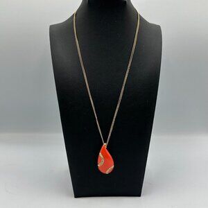 3/$30 Kiam Family Pendant Necklace Gold Orange Teardrop Rhinestone Long Chain
