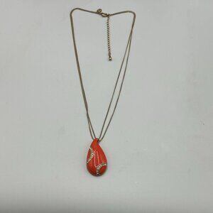 Kiam Family Pendant Necklace Gold Tone Orange Teardrop Rhinestone Long Chain 22"