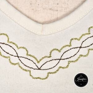 3/$30 Liz Claiborne Cream with Gold Metallic Embroidered V Neck Knit Top Large