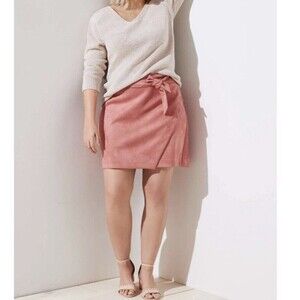 3/$30 Loft Skirt Womens 10 Pink Summer Rose Faux Suede Tie Front Wrap Mini
