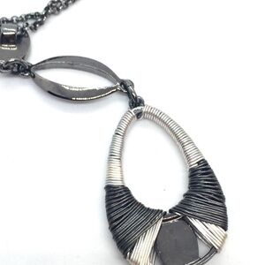 Beautiful NINE WEST GUNMETAL SILVER TONE WIRE WRAPPED YELLOW CRYSTAL PENDANT NECKLACE. Measures 16” around neck. Pendant measures 1” wide x 3.5”. Has a modern boho / bohemian vibe. Very good condition. Great way to spice up a simple outfit.