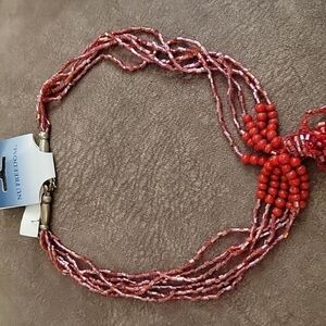 3/$30 NU FREEDOM Coral Red Multi-strand Torsade Glass Beaded Holiday Necklace