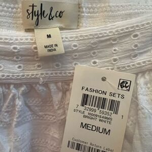 😊3/$30 NWT Style & Co. Womens Eyelet & Picot Square Neck Tank Top White Sz S
