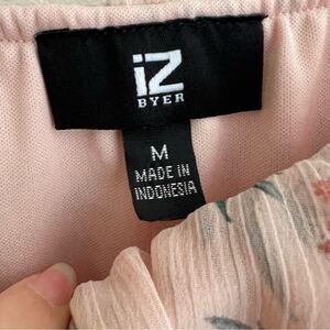 😊3/$30 Off shoulder sheer sleeves tropical tie front blouse Sz M EUC