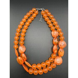 3/$30 Orange Beaded Necklace Acrylic Beads Double Strand Chunky Frosted Faceted