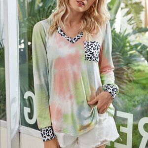 3/$30 Pastel Tie Dye Leopard Print Long Sleeve Rave Shirt