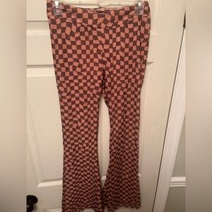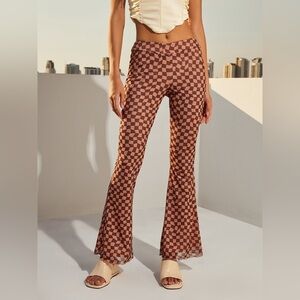 3/$30!! Peppermayo Women’s Pull On Night Fever Flare Mesh Checkered Pants Size 8