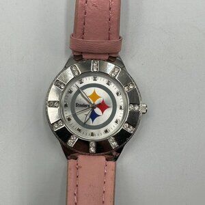3/$30 Pittsburgh Steelers Watch Women Silver Tone Pink Band NFL Rhinestone Works