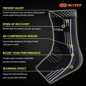 BLITZU Plantar Fasciitis Compression Ankle Sleeves For Women & Men - Best Ankle Brace and Nano Socks For Everyday Use. Provides Foot & Arch Support. Heel Pain, & Achilles Tendonitis Relief.