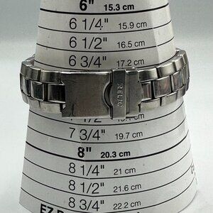 Relic Watch Men Silver Tone Blue Day Date Multi Dial 39MM New Battery 7.75 Inch