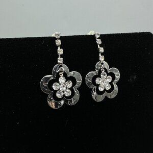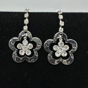 3/$30 Rhinestone Flower Earrings Silver Drop Pierced Dangle Sparkly Floral 1.5"
