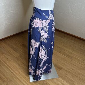 3/$30 Roxy Midi Skirt Womens Medium Mood Indigo Floral Button Front Smocked Back