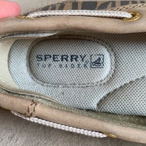 EUC Sperry topsider loafers size 5. Leather upper. Animal print on side. Top laces. Lots of cushion.