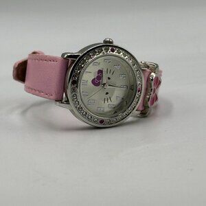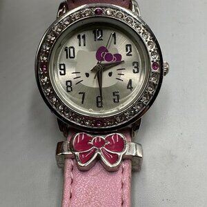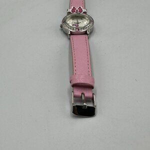 3/$30 Sanrio Hello Kitty Watch Girls Silver Tone Crystal Bezel Pink Band