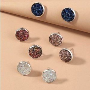 3/$30 Set of 4 Pairs Glittering Druzzy Stud Earrings