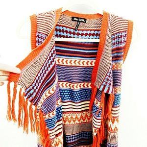 ⭐3/$30 Southwestern Aztec Tribal Fringe Orange Duster S