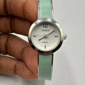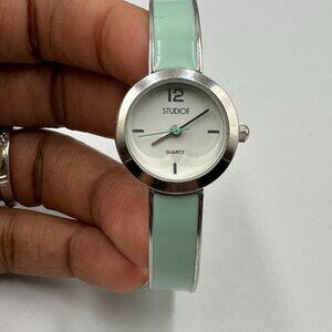 Studio Time Watch Women Silver Tone Mint Green Bangle Band New Battery 7"