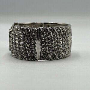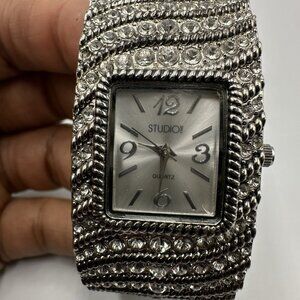 Studio Time Watch Women Silver Wide Clamper Band Rhinestones New Battery