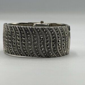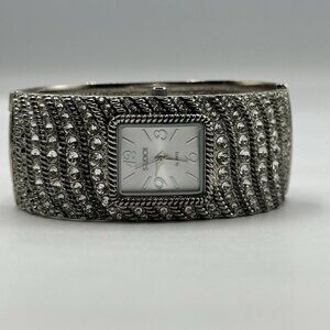 3/$30 Studio Time Watch Women Silver Wide Clamper Band Rhinestones New Battery