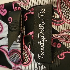 3/$30 TWENTY DOLLAR TIE Striped Hot Pink Paisley Silver Black Tie