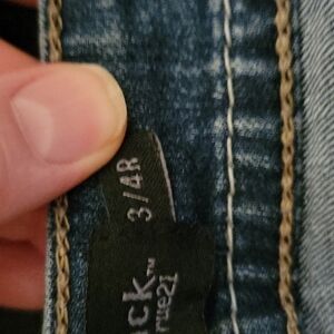 One back pocket is missing a snap button and studs. Price has been reduced due to flaws.