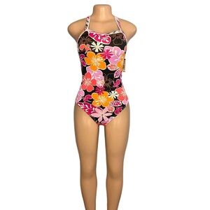 Brand new with tags The Finals Paradise Garden Butterfly Back One Piece Swimsuit Pink and Black in size small 3/4.