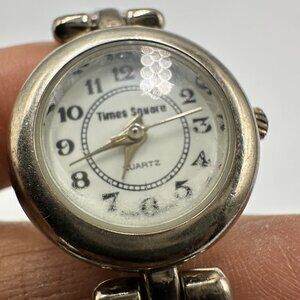 Times Square Watch Women Silver Tone Small Dial Geometric Link Band New Battery