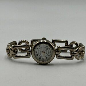 3/$30 Times Square Watch Women Silver Tone Small Dial Geometric Link Band