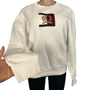 3/$30 🍂 Tommy Hilfiger Y2K Vintage Crew Neck Crest Embroidered Sweatshirt White