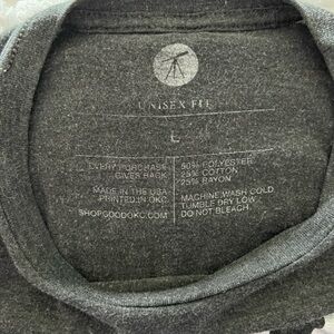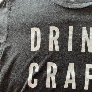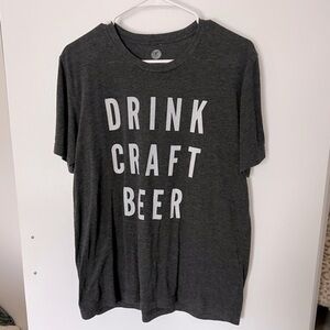 Short sleeve crewneck tshirt in a dark grey with large block print that says “drink craft beer”. Material is soft and lived-in. In good used condition, some pilling from normal wear.