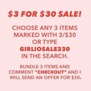 ****SALE ALERT! BUNDLE THIS ITEM WITH 2 MORE ITEMS MARKED 3/$30 IN MY CLOSET, COMMENT "CHECKOUT" AND I'LL SEND $30 OFFER! There are hundreds of participating items to choose from. To find these items, type GIRLIOSALE330 in the search bar on Poshmark.