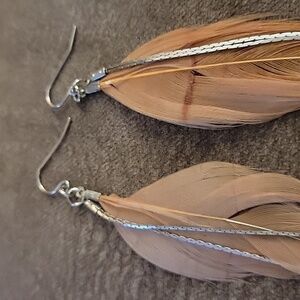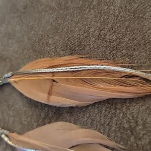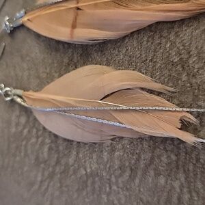 3/$30 VTG Fairycore Tan Feather Chain Dangle Hook Earrings