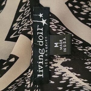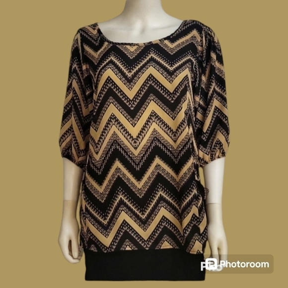 3/$30 VTG LIVING DOLL Zigzag Chevron Balloon Elbow Sleeve Chiffon Blouse