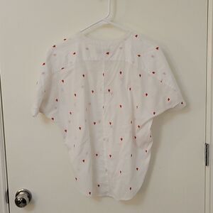 3/$30 VTG LOFT Petite Hi-Low Heart Embroidered Coquette Semi-sheer Blouse