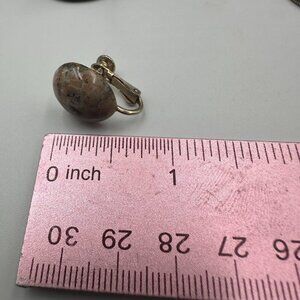 3/$30 Vintage Brooch Earring Set Gold Tone Brown Granite Design Screw Back 1.5"