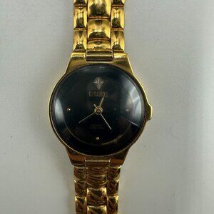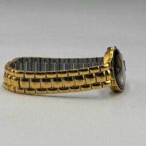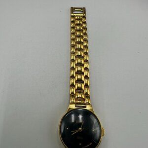 3/$30 Vintage Gitano Watch Women Gold Tone Black Dial Diamond Accent 7"