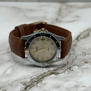 Vintage Timex Watch Women Silver Tone Date Brown Leather Band New Battery 8.5"