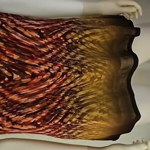3/$30 Vtg AXCESS Brown Ombre Swirl Mesh Overlay Short Sleeve Scoop Neck Blouse