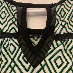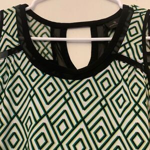 3/$30 Worthington sleeveless green and black tee with sheer black trim Size S