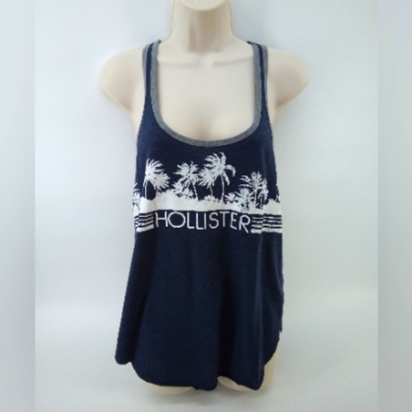 Hollister Palm Trees Blue White Navy Gray Tank Top Small