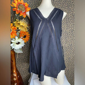 🌴3/$30🌴DOE & RAE Black Lightweight Embroidered Cotton Tank Top NWT