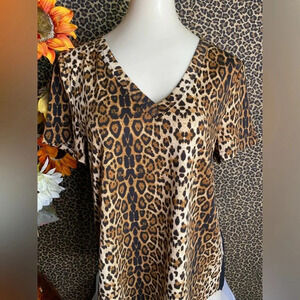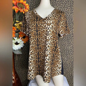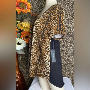 🌴3/$30🌴DOE & RAE Leopard Animal Print/Black Color Block Boho Top NWT