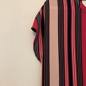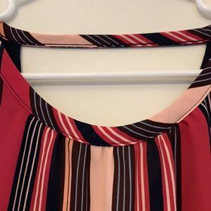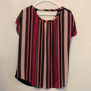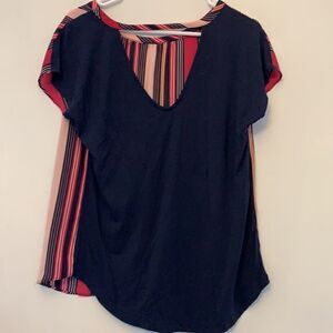 3/$30 Loft outlet pink and navy striped blouse with a navy back Size M Length 25