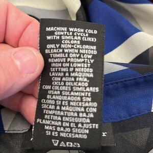 3/$30 Metaphor black blue sheer patterned cap sleeve blouse Size S