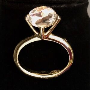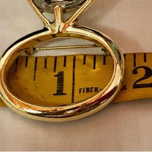 3/$32 VTG 80s Gold Tone Clear Stone Solitaire Engagement Ring Novelty Brooch Pin