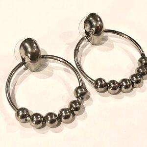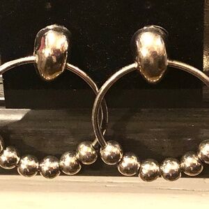 3/$32 VTG 80s Polished Silver Metal Beaded Door Knocker Hoops Pierced Earrings