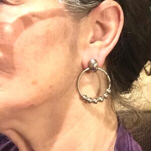 Vintage Polished Silver Beaded Door Knocker Pierced Earrings