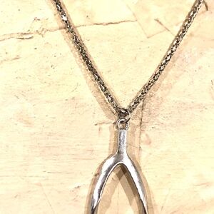 3/$32 VTG 90s Unisex Silver Tone 1.5" L Wishbone Pendant on 18" Necklace Chain