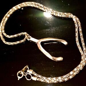 Vintage Wishbone Pendant on Silver Necklace Chain